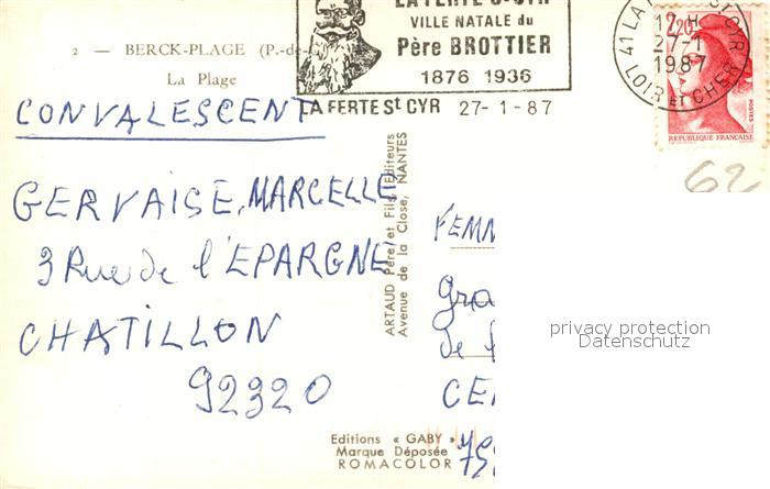 13572862 carte postale Berck-Plage postalisch gelaufen Erhaltung siehe scans [PaolaD17] KatCode: 11170062462108