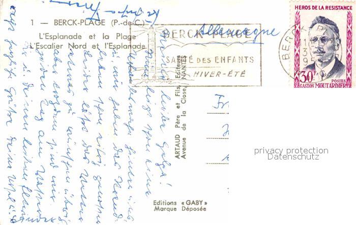 12757210 carte postale Berck-Plage Esplanade et la Plage Escalier Nord postalisch gelaufen Erhaltung siehe scans [FriedD77] KatCode: 11170062462108