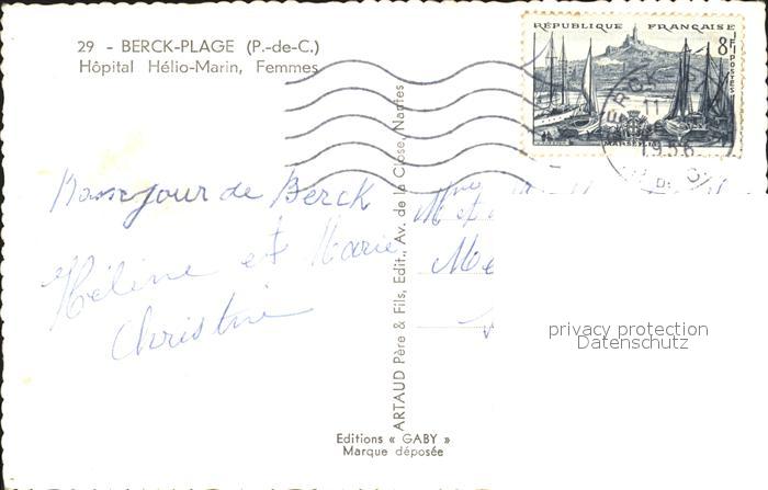 12073477 carte postale Berck-Plage Hopital Helio Marin Femmes postalisch gelaufen Erhaltung siehe scans KatCode: 11170062462108