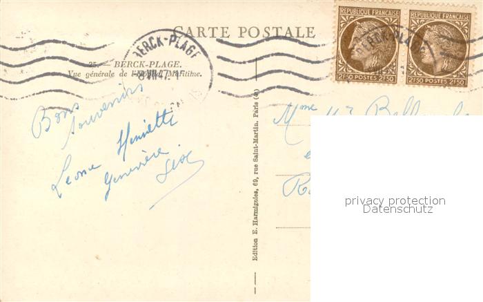 13630839 Berck-Plage Vue Generale de l Hôpital Maritime postalisch gelaufen Erhaltung siehe scans [FriedD77] carte postale Frie Katcode 11170062462108