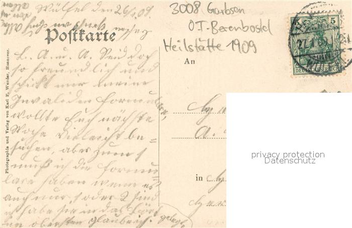 33702089 alte Postkarte Berenbostel Heilstaette Heidehaus postalisch gelaufen Erhaltung siehe scans [WerneD78] KatCode: 11110003241005