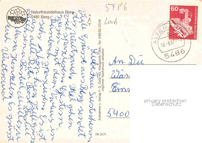72908968 alte Postkarte Berg Ahrweiler Naturfreundehaus Berg postalisch gelaufen Erhaltung siehe scans [FriedD77] KatCode: 11110007131011
