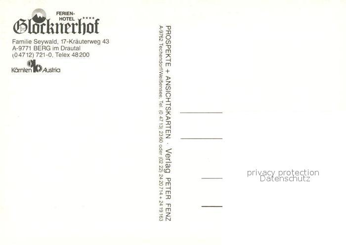 73243803 Berg Drautal Ferienhotel Glocknerhof Fliegeraufnahme postalisch nicht gelaufen Erhaltung siehe scans [FriedD77] KatCode: 11390212020603