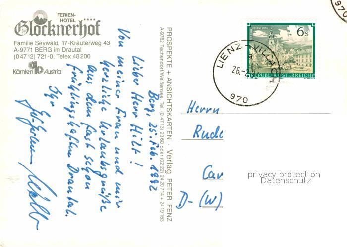 72840260 alte Postkarte Berg Drautal Ferienhotel Glocknerhof Skilaeufer postalisch gelaufen Erhaltung siehe scans [WerneD78] KatCode: 11390212020603