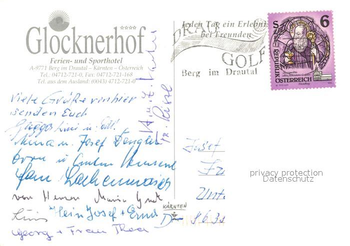 73243808 alte Postkarte Berg Drautal Ferienhotel Sporthotel Glocknerhof postalisch gelaufen Erhaltung siehe scans [FriedD77] KatCode: 11390212020603