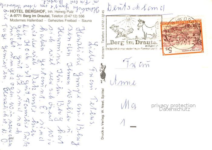 12973092 alte Postkarte Berg Drautal Hotel Berghof postalisch gelaufen Erhaltung siehe scans [NatalD47] KatCode: 11390212020603