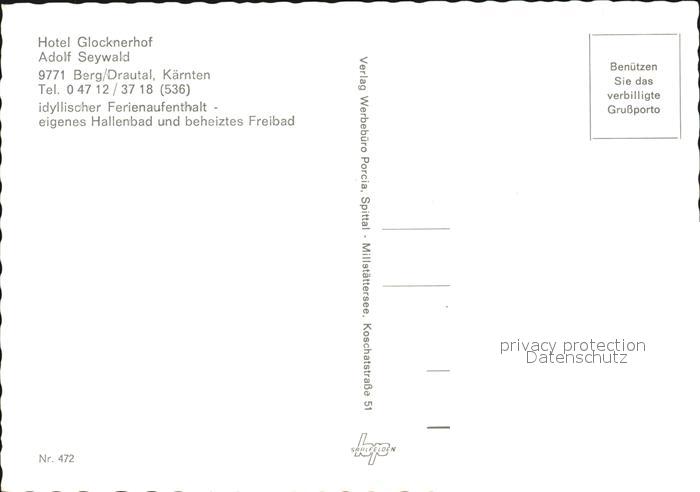 72443412 Berg Drautal Hotel Glocknerhof postalisch nicht gelaufen Erhaltung siehe scans KatCode: 11390212020603