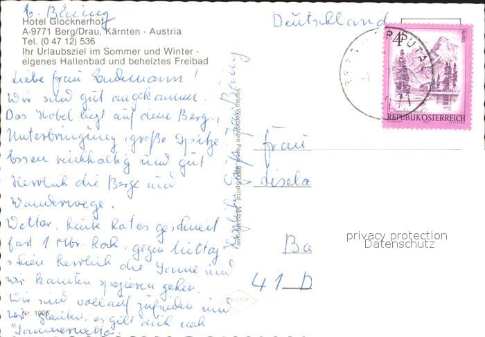 71991416 alte Postkarte Berg Drautal Hotel Glocknerhof postalisch gelaufen Erhaltung siehe scans KatCode: 11390212020603