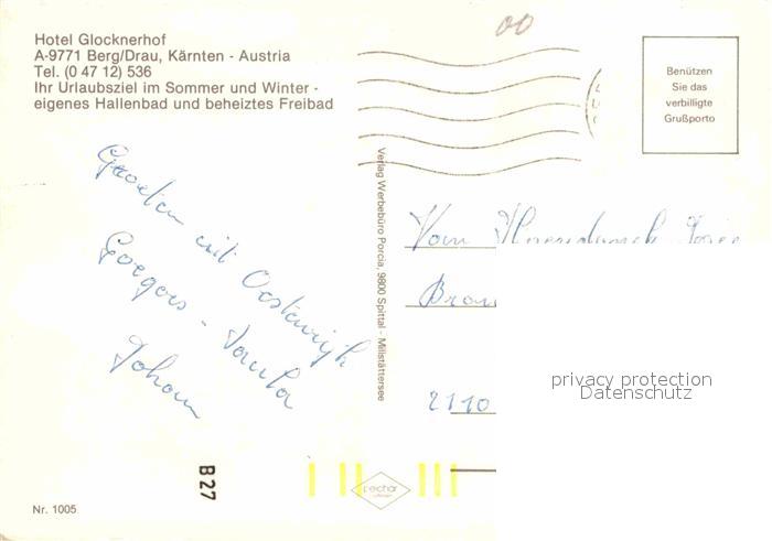72906862 alte Postkarte Berg Drautal Hotel Glocknerhof Freibad Hallenbad postalisch gelaufen Erhaltung siehe scans [LiesaD40] KatCode: 11390212020603