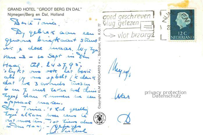 74156371 old postcard Berg en Dal Gelderland NL Grand-Hotel-Groot-Berg-en-Dal Swimmingpool Terrasse Liegewiese Luftaufnahme Parkanlage Wald postalisch gelaufen Fliegeraufnahme Erhaltung siehe scans [Karloger] KatCode: 11370