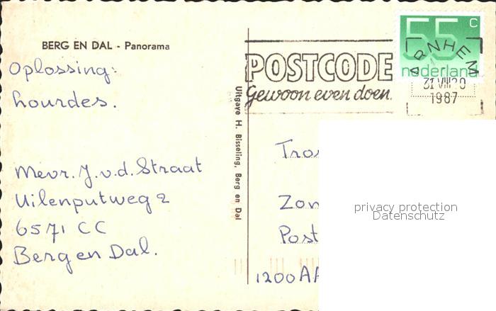 old postcard Berg en Dal Panorama postalisch gelaufen Erhaltung siehe scans