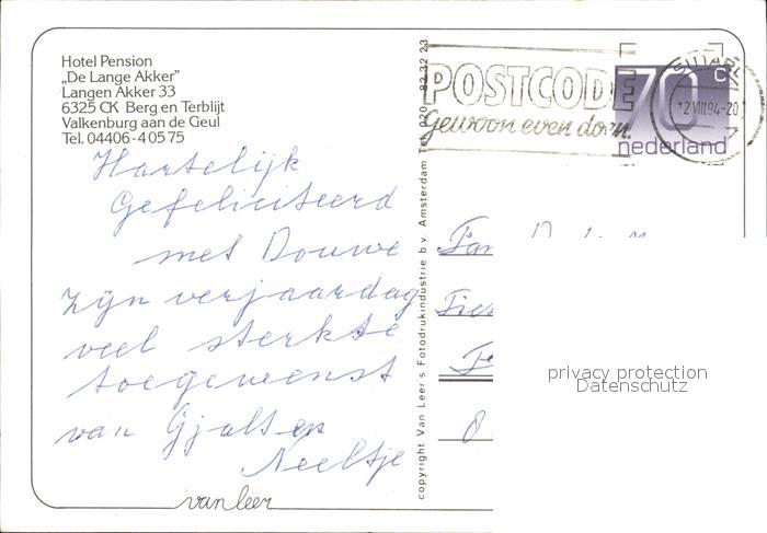 old postcard Berg en Terblijt Hotel Pension De Lange Akker postalisch gelaufen Erhaltung siehe scans