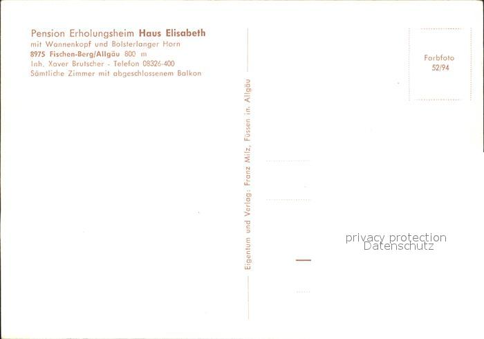 72240142 Berg Fischen Allgaeu Pension Erholungsheim Haus Elisabeth Wannenkopf Bolsterlanger Horn Allgaeuer Alpen postalisch nicht gelaufen Erhaltung siehe scans KatCode: 11110009780121