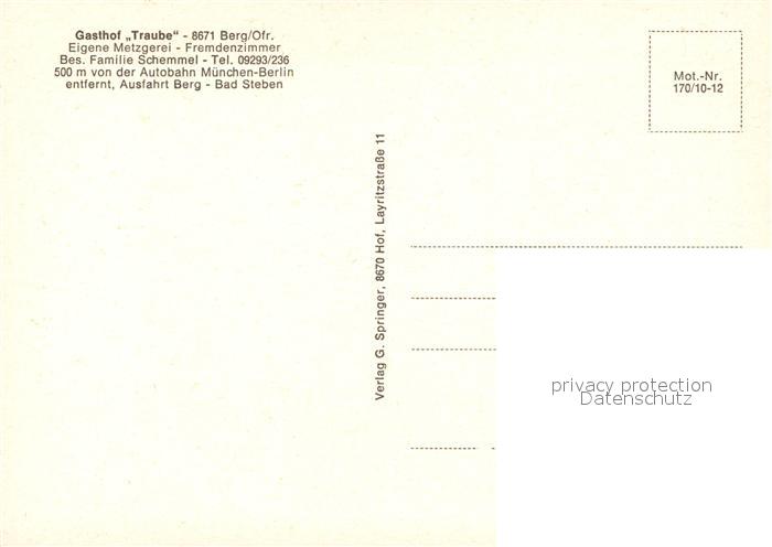 73542460 Berg Oberfranken Gasthof Traube postalisch nicht gelaufen Erhaltung siehe scans [KathaD81] KatCode: 11110009475113