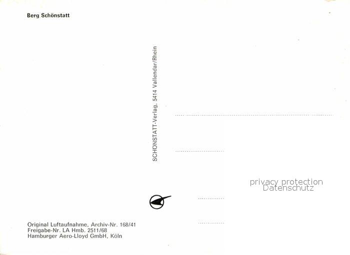 72725845 Berg Schoenstatt Fliegeraufnahme postalisch nicht gelaufen Erhaltung siehe scans [WerneD78] KatCode: 11110007137226