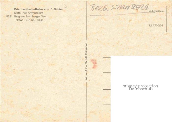 74109623 Berg Starnberg Bayern Priv Landschulheim von E Schier Math nat Gymnasium postalisch nicht gelaufen Erhaltung siehe scans [WerneD78] KatCode: 11110009188113