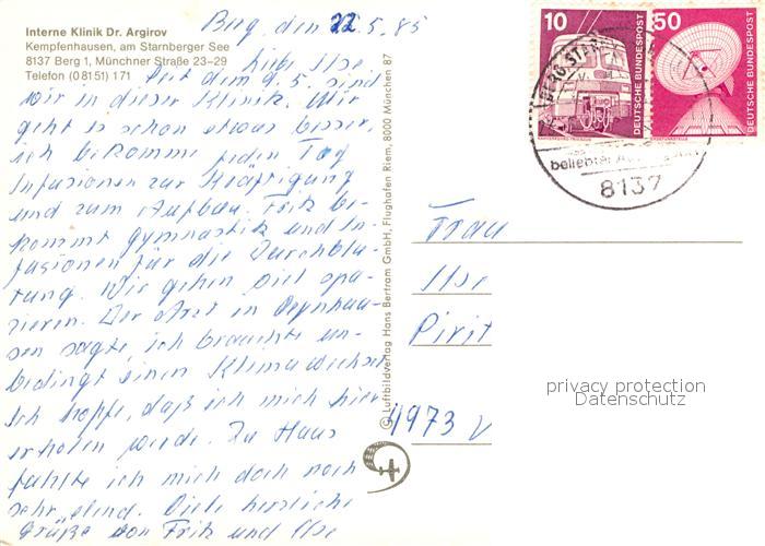 72959635 alte Postkarte Berg Starnberg Interne Klinik Dr. Argirov postalisch gelaufen Erhaltung siehe scans [NatalD47] KatCode: 11110009188113