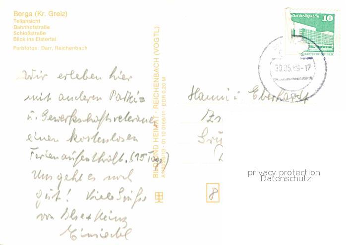 72630638 alte Postkarte Berga Elster Bahnhofstrasse Schlossstrasse Elstertal postalisch gelaufen Erhaltung siehe scans [LiesaD40] KatCode: 11110016076004
