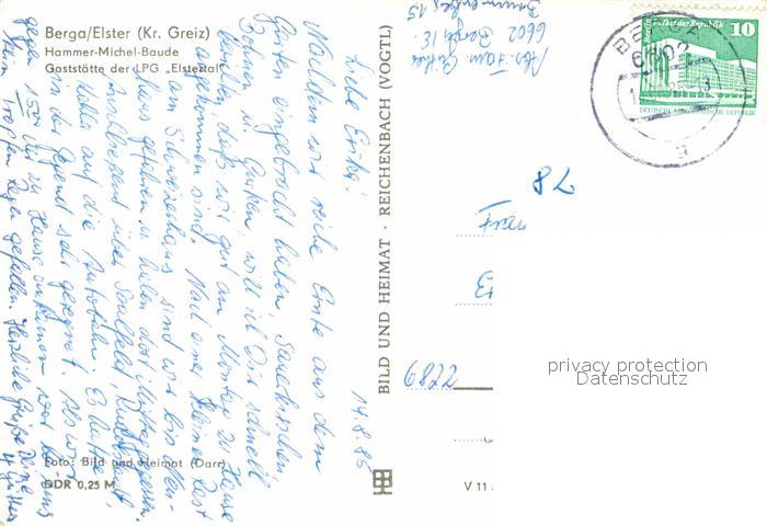 72728626 alte Postkarte Berga Elster Hammer Michel Baude Gaststaette der LPG Elstertal postalisch gelaufen Erhaltung siehe scans [FriedD77] KatCode: 11110016076004