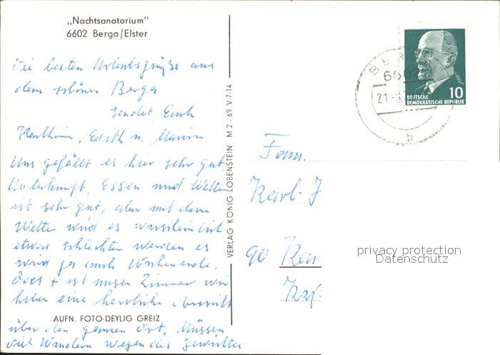 72120097 alte Postkarte Berga Elster Nachtsanatorium postalisch gelaufen Erhaltung siehe scans KatCode: 11110016076004