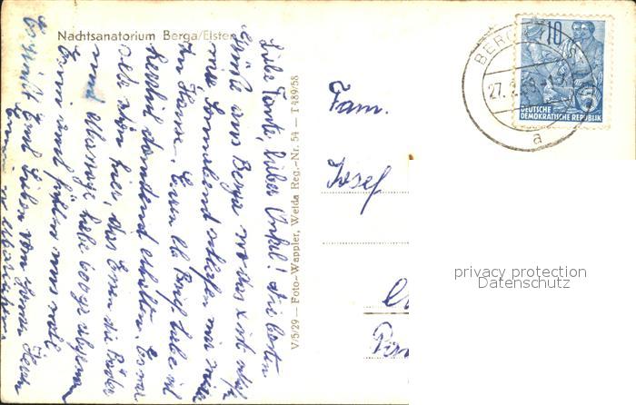 72463906 alte Postkarte Berga Elster Nachtsanatorium postalisch gelaufen Erhaltung siehe scans KatCode: 11110016076004