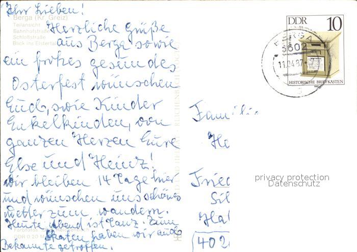 72423615 alte Postkarte Berga Elster Panorama Bahnhofstr Schloss Str Elstertal postalisch gelaufen Erhaltung siehe scans KatCode: 11110016076004