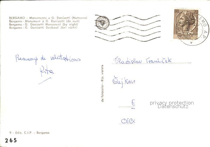old postcard Bergamo Donizetti G. Denkmal postalisch gelaufen Erhaltung siehe scans