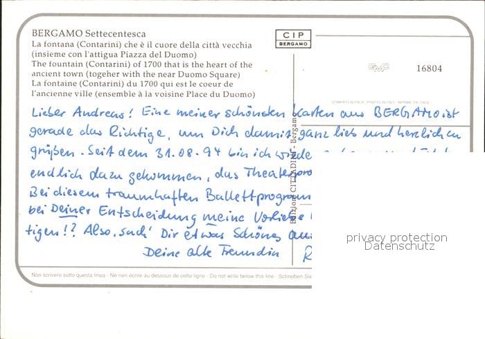Bergamo Fontana Contarini Piazza del Duomo postalisch nicht gelaufen Erhaltung siehe scans