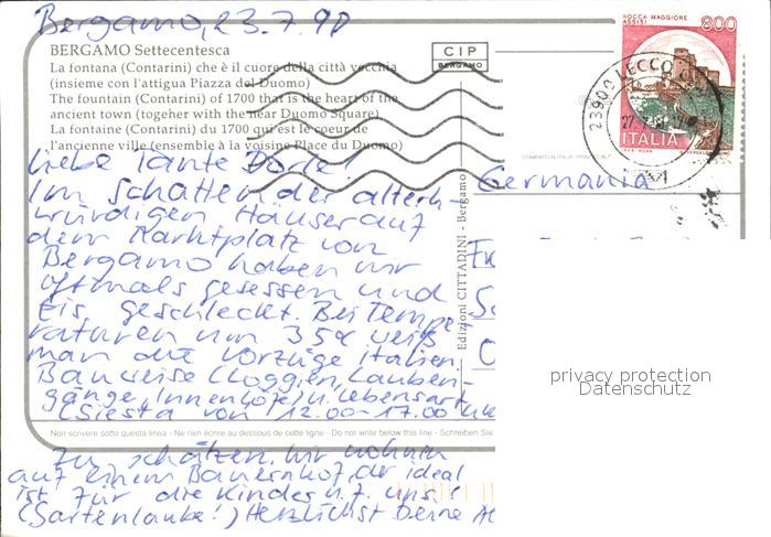 old postcard Bergamo La fontana postalisch gelaufen Erhaltung siehe scans