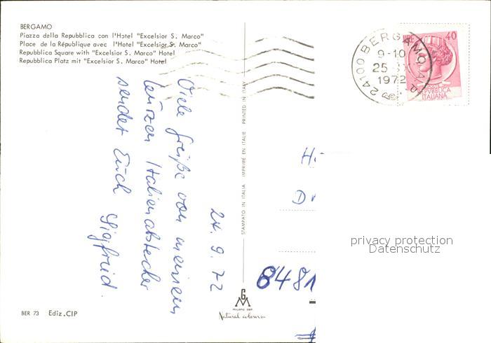 old postcard Bergamo Piazza della Republica con Hotel Excelsior S Marco postalisch gelaufen Erhaltung siehe scans