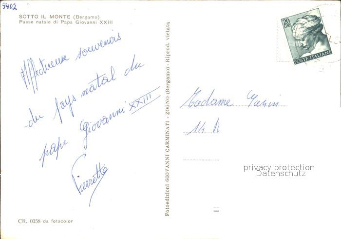 old postcard Bergamo Sotto il Monte Paese natale di Papa Giovanni XXIII postalisch gelaufen Erhaltung siehe scans