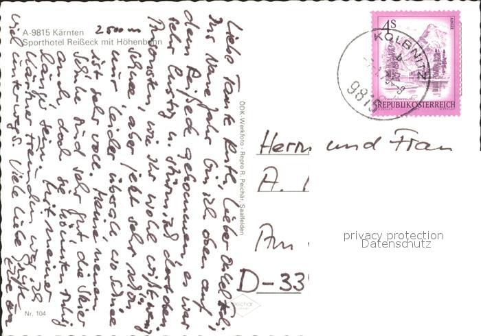 alte Postkarte Bergbahn Hoehenbahn Sporthotel Reisseck postalisch gelaufen Erhaltung siehe scans