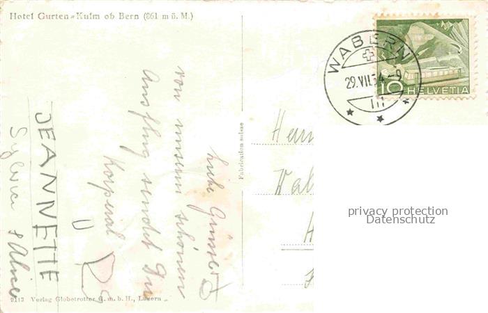 74064578 alte Postkarte Bergbahn Hotel Gurten Kulm Bern postalisch gelaufen Erhaltung siehe scans [SanaeD93] KatCode: 22040000000800