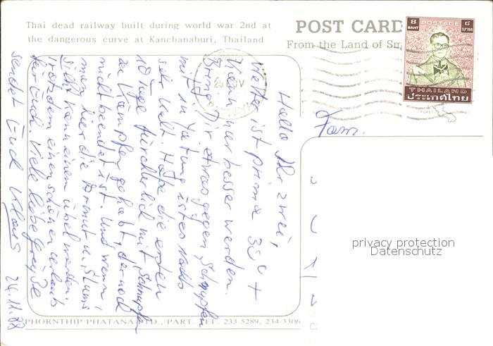 alte Postkarte Bergbahn Kanchanaburi Thailand postalisch gelaufen Erhaltung siehe scans