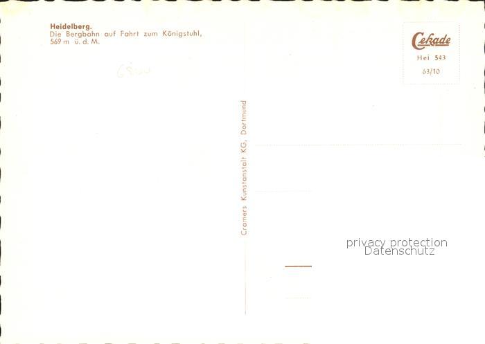 Bergbahn Koenigstuhl Heidelberg postalisch nicht gelaufen Erhaltung siehe scans