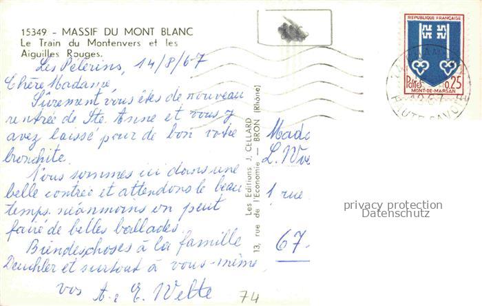 74116710 alte Postkarte Bergbahn Massif du Mont Blanc Aiguilles Rouges postalisch gelaufen Erhaltung siehe scans [SanaeD93] KatCode: 22040000000800