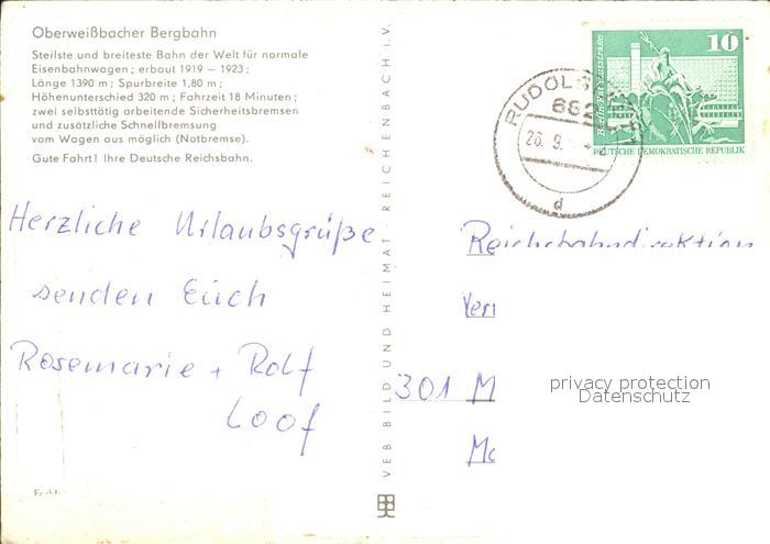 alte Postkarte Bergbahn Oberweissbach postalisch gelaufen