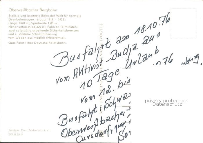 Bergbahn Oberweissbach postalisch nicht gelaufen Erhaltung siehe scans