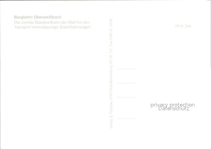 Bergbahn Oberweissbach postalisch nicht gelaufen Erhaltung siehe scans