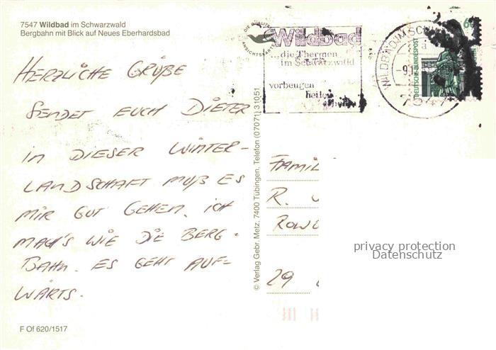 74155073 alte Postkarte Bergbahn Wildbad im Schwarzwald postalisch gelaufen Erhaltung siehe scans [SanaeD93] KatCode: 22040000000800