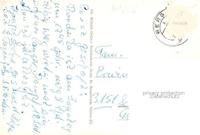 73855347 alte Postkarte Berge Osnabrueck Ansicht mit Kirche postalisch gelaufen Erhaltung siehe scans [FriedD77] KatCode: 11110003459009