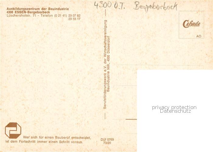 73866120 Bergeborbeck Essen Ausbildungszentrum der Bauindustrie Details postalisch gelaufen Erhaltung siehe scans [WerneD78] alte Postkarte Wern Katcode 11110005113000