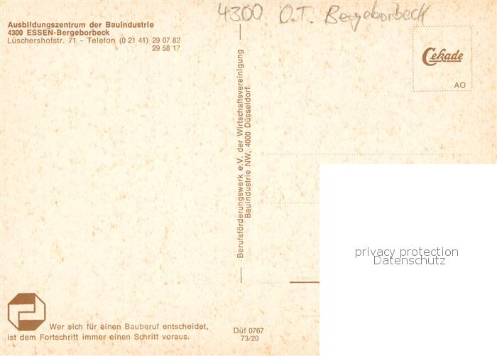 73866121 Bergeborbeck Essen Ausbildungszentrum der Bauindustrie Teilansichten postalisch nicht gelaufen Erhaltung siehe scans [WerneD78] Wern Katcode 11110005113000