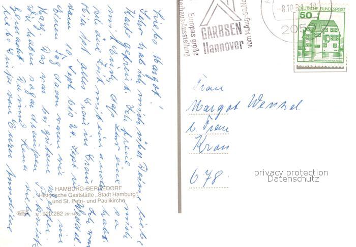 73059234 alte Postkarte Bergedorf Hamburg Gaststaette Stadt Hamburg mit St Petri und Paulikirche postalisch gelaufen Erhaltung siehe scans [WerneD78] KatCode: 11110002000000