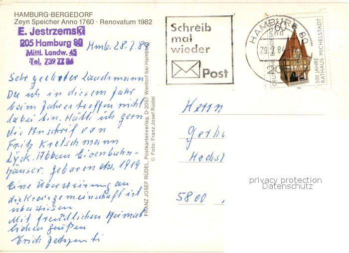 73736382 alte Postkarte Bergedorf Hamburg Zeyn Speicher Anno 1760 Renovatum 1982 postalisch gelaufen Erhaltung siehe scans [WerneD78] KatCode: 11110002000000