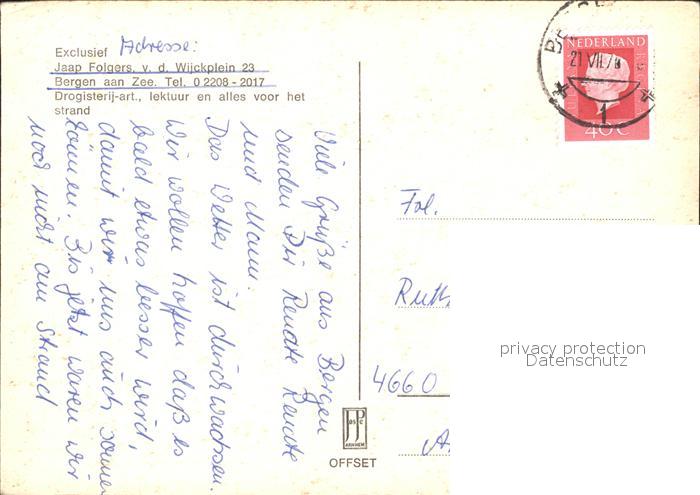 old postcard Bergen aan Zee Fliegeraufnahme postalisch gelaufen Erhaltung siehe scans
