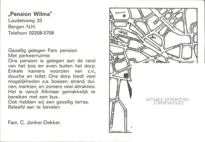 Bergen aan Zee Pension Wilma postalisch nicht gelaufen Werbekarte (keine Postkarte) Erhaltung siehe scans