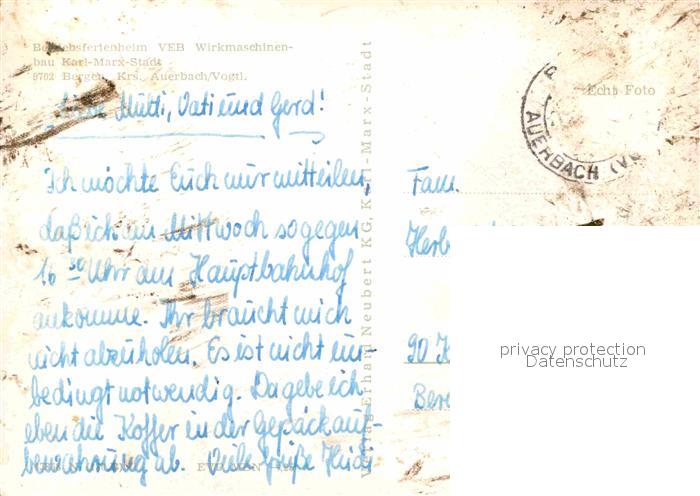 72702271 alte Postkarte Bergen Auerbach Betriebsferienheim postalisch gelaufen Erhaltung siehe scans [AndreD76] KatCode: 11110014178070