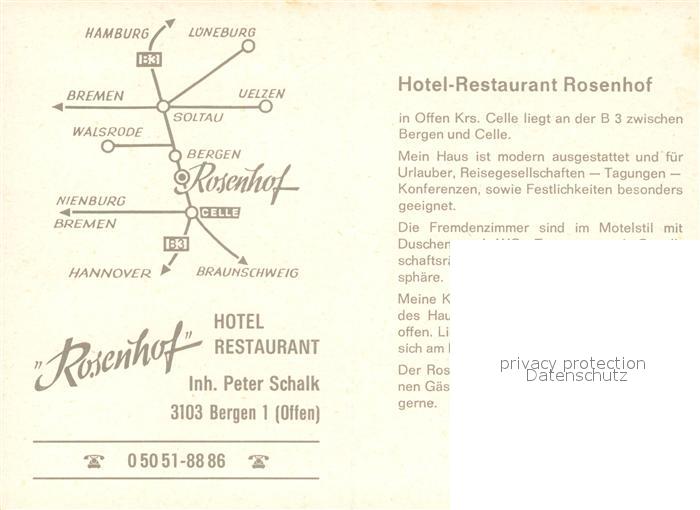73569899 Bergen-Belsen Hotel Restaurant Rosenhof Gastraeume Kaminzimmer postalisch nicht gelaufen Werbekarte (keine Postkarte) Erhaltung siehe scans [WerneD78] KatCode: 11110003351004