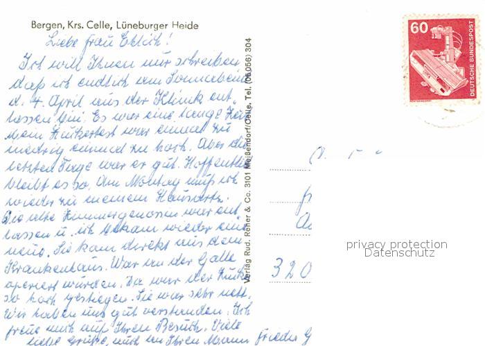 72798646 alte Postkarte Bergen Celle St Lambertius Kirche Museum Stadtbad postalisch gelaufen Erhaltung siehe scans [FriedD77] KatCode: 11110003351004